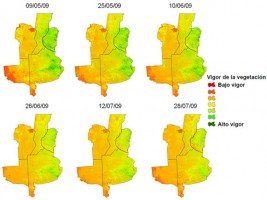 Por medio del empleo de las imágenes MODIS puede apreciarse en la Imagen 1, cuál era el índice de verdor de la vegetación desde mayo a julio, el cual tiene una estrecha relación con la disponibilidad de humedad en el perfil del suelo.