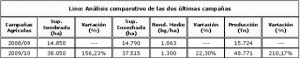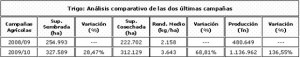 Comienza la campaña con una intención de siembra de trigo inferior en aproximadamente el 20% con respecto a la 2008/09, debido fundamentalmente a la sequía imperante en ese año agrícola, el desfinanciamiento de los productores y las escasas reservas de agua en el perfil a inicios del mes de mayo; y para el caso del lino si bien la intención de siembra era superior, la concreción de la misma estaba supeditada a la existencia de semilla en el mercado.