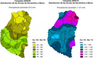 Durante la campaña 2008/09 el monto acumulado promedio fue de 433 mm, con extremos mínimos cercanos a los 200 mm y máximos próximos a los 800 mm.