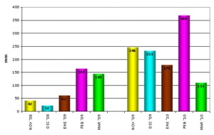 Los siguientes mapas presentan las precipitaciones acumuladas en los meses de referencia de las campañas 2008/09 y 2009/10.