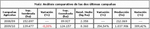 Si bien los productores manifestaban una intención de siembra inferior a la de la campaña 2008/09, el hecho de tener semilla guardada, el incremento en el uso de híbridos tardíos, las excelentes reservas hídricas y las buenas expectativas de rindes asociadas al efecto de “El Niño” fueron las causas principales de que el área maicera no sufriera una caída tan drástica.