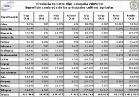 La Bolsa de Cereales de Entre Ríos en el marco del SIBER elaboró el informe con las cifras definitivas por departamento del ciclo agrícola 2009/10 en el ámbito provincial.