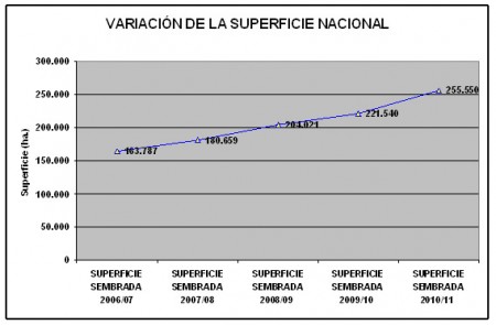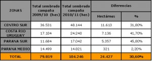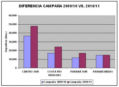 Existen diferencias negativas en los porcentajes de participación con la anterior campaña, pero de todos modos en todos los casos existió incremento en el área sembrada, lo cual expresa las diferentes magnitudes de crecimiento en cada una de ellas.
