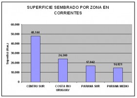 Con respecto a la anterior campaña se puede observar claramente en el gráfico la magnitud de los incrementos dados para cada zona dentro de la provincia de Corrientes.