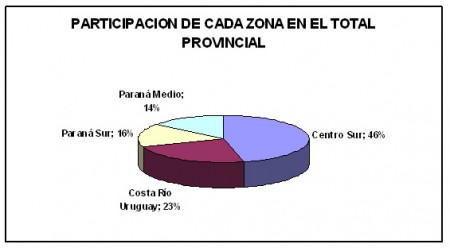 La región mas arrocera sigue siendo la zona Centro Sur con el 46%, a esta le sigue la Costa del Río Uruguay con el 23% luego la zona de Paraná Sur con el 16% y Paraná Medio 14%.