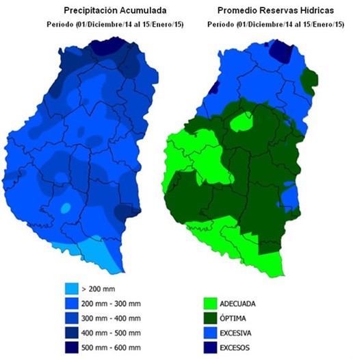 El escenario climático se presentó favorable para el cultivo de maíz ya que esta campaña se caracterizó por un año EL NIÑO (lluvias por encima de lo normal) y en los meses de diciembre y enero, fecha crítica para el cereal, tuvo la cantidad necesaria de precipitaciones para desarrollar su potencial de rendimiento, tal como lo muestran los mapas Nº 1 y 2 de precipitaciones acumuladas y reservas de los suelos.