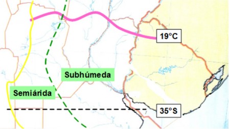 En cuanto el límite norte, está definido por la isoterma media de 19°C, donde se puede observar a ciudad de La Paz, esta línea separa la Región Pampeana Norte de la Región Chaqueña.
