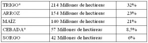 En la Tabla 1 se observa la importancia a nivel mundial de los principales cereales. Según la FAO en el 2006 existía una relación de 1 hectárea de cebada por 4 hectáreas de trigo.