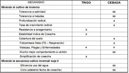 Los aspectos técnicos – productivos del trigo vs cebada se mencionan en la Tabla 3.