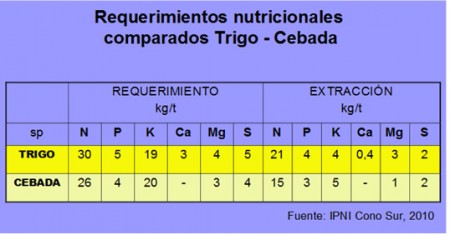 La inclusión de cebada en el sistema agrícola de la Región Pampeana Norte no reemplazará a la producción de trigo, ya que existe una demanda interna de 4.000.000 tn de consumo interno.