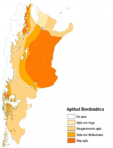 El mapa 1 muestra la aptitud bioclimática para colza de primavera y el Mapa 2 la aptitud bioclimática para la colza de invierno.