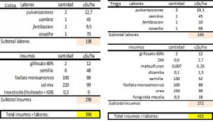 COSTO COMPARATIVO POR HECTÁREA COLZA VS. TRIGO