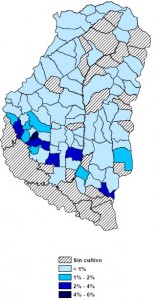 Se destacan los departamentos Victoria y Gualeguaychú, los cuales abarcan un área de 10.000 ha y que representan el 34% del total implantado en Entre Ríos.