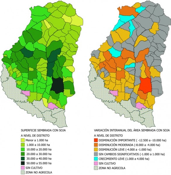 SUPERFICIE SEMBRADA CON SOJA Y VARIACIÓN INTERANUAL A NIVEL DE DISTRITO