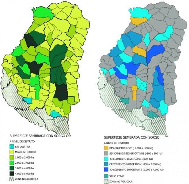 SUPERFICIE SEMBRADA CON SORGO Y VARIACIÓN INTERANUAL A NIVEL DE DISTRITO
