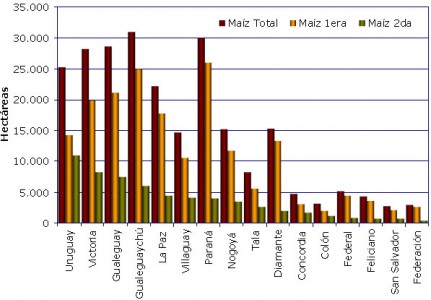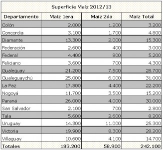 La Bolsa de Cereales de Entre Ríos ha realizado el informe sobre el área cultivada con maíz total en la provincia para la campaña 2012/13.